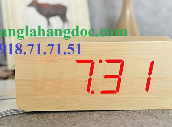 Đồng hồ cục gỗ cảm ứng âm thanh chữ nhật (cỡ nhỏ) LED Đỏ/ Xanh